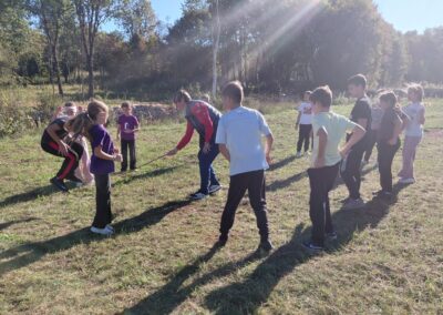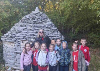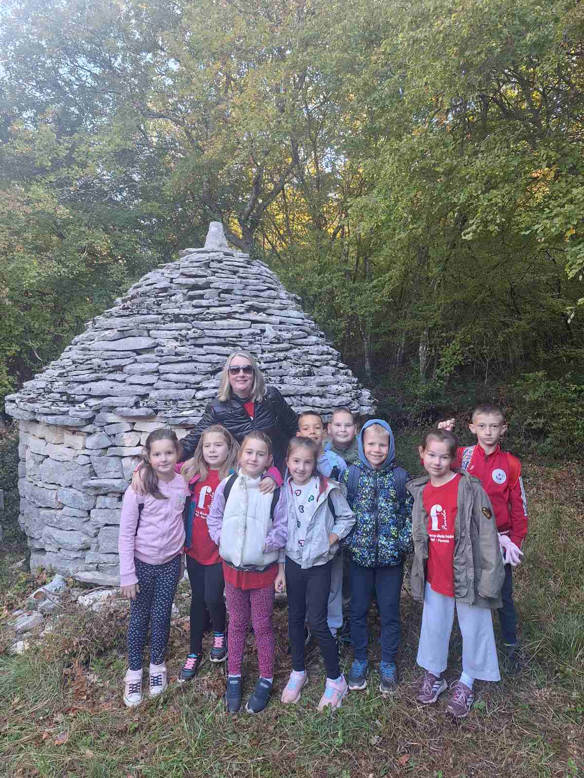 Sudjelovali su u radionicama koje organizira Udruga „Babin pas“ iz Rovinjskog Sela s ciljem da se djecu upozna s kažunima, vrijednom ostavštinom tradicijske graditeljske baštine Istre, kao i starinskim igrama naših baka i djedova koje su igrali dok su čuvali stoku na ispaši pored kažuna. Vlakićem su se vozili do najvećeg kažuna gdje su čuli priču o nastanku kažuna. Pješačenjem Stazama kažuna Rovinjskog Sela imali su prilike upoznati tradicijsku gradnju kažuna. Najzanimljivije su im bile starinske igre koje su igrali na livadi kod kažuna. Učenici su aktivno i zainteresirano sudjelovali u svim aktivnostima, proveli su topao i sunčan dan u igri i šetnji na svježem zraku te izrazili želju za još ovakvih školskih dana.