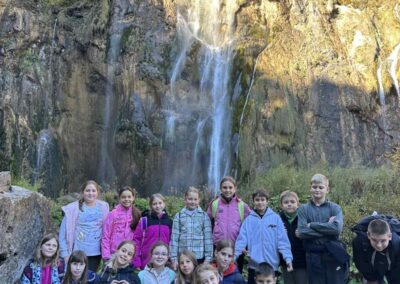 Dana 23. listopada 2025. u ranim jutarnjim satima učenici 4.a, 4.b. 4.c i 4. NV pod vodstvom svojih razrednih učiteljica Suzane Jakotić, Renate Maltar, Viktorije Banko Vrtačić i Angele Petrovske, pomoćnica u nastavi Danijele Zović i Adriane Lepen te učitelja u pratnji Doris Gavranović i Livija Bartolića uputili su se na dvodnevnu terensku nastavu. Tijekom prvog dana upoznali smo glavni Republike Hrvatske, Zagreb. Posjetili smo Tehnički muzej Nikole Tesle u kojem smo razgledali postav starih automobila, rudnik te planetarij nakon čega smo uz stručno vodstvo prošetali Ilicom, upoznali i razgledali središte grada, Trg bana Jelačića, Kaptol, kulu Lotršćak, Trg svetog Marka i kupili suvenire za uspomenu. Razgledali smo i Zoološki vrt Maksimir te uživali u susretu sa životinjama. Predvečer, već pomalo umorni, napunili smo baterije tijekom vožnje do Plitvičkih jezera gdje smo se smjestili u hotel, večerali, a zatim uživali uz pjesmu i ples. Ujutro drugog dana, nakon doručka, posjetili smo NP Plitvička jezera uz stručno vodstvo. Šetali smo stazama i upijali ljepote šuma oslikanih jesenskim bojama. Vozili smo se vlakićem i brodićem uživajući u igri povjetarca i sunčevih zraka. Nakon ručka, krenuli smo prema Poreču uz vožnju preko Velebita i pauzom za užinu u Senju s pogledom na kulu Nehaj. U Poreč smo stigli u večernjim satima, umorni, ali prepuni dojmova. Dvodnevna terenska nastava protekla je i veseloj i dinamičnoj atmosferi. Učenici su bili aktivni, a vrijeme nas je, srećom, poslužilo tijekom oba dana. Zahvaljujemo učenicima na pristojnom ponašanju, a roditeljima na povjerenju. Iščekujemo nove avanture!